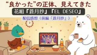 花組『蒼月抄』を配信で再観劇。“良かった”と感じた理由を、テンポの良さや群像劇の構造、明子視点の物語として整理しました。さらに、強く印象に残った義経の異質さについても考察します。